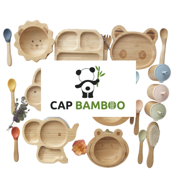 Divers produits pour enfants, notamment des vêtements, un timbre, un livre et une bouteille d'eau, le tout sous la marque "bienmarquer".