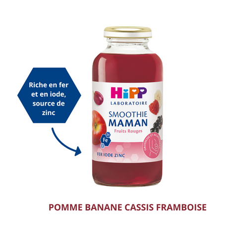 Plus d'un quart des femmes enceintes présentent une carence en fer : le smoothie fruits rouges a été conçu pour soutenir les besoins accrus de la maman durant la grossesse et l'allaitement.